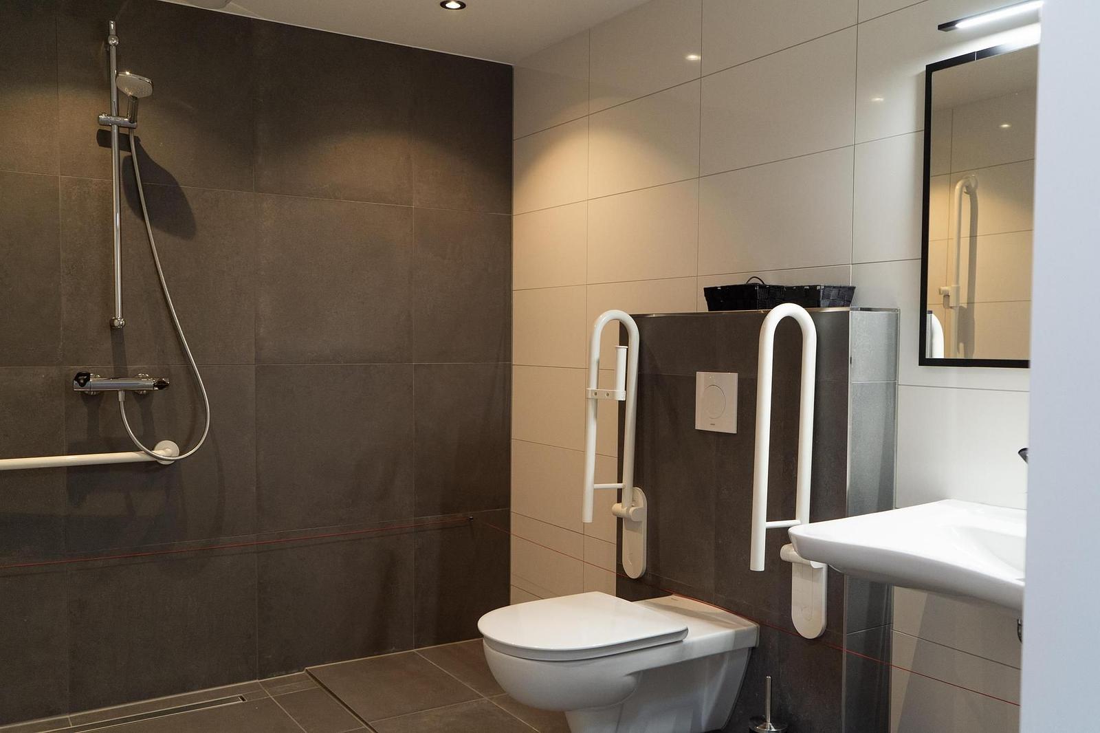 - Met mindervalidentoilet en douchestoel