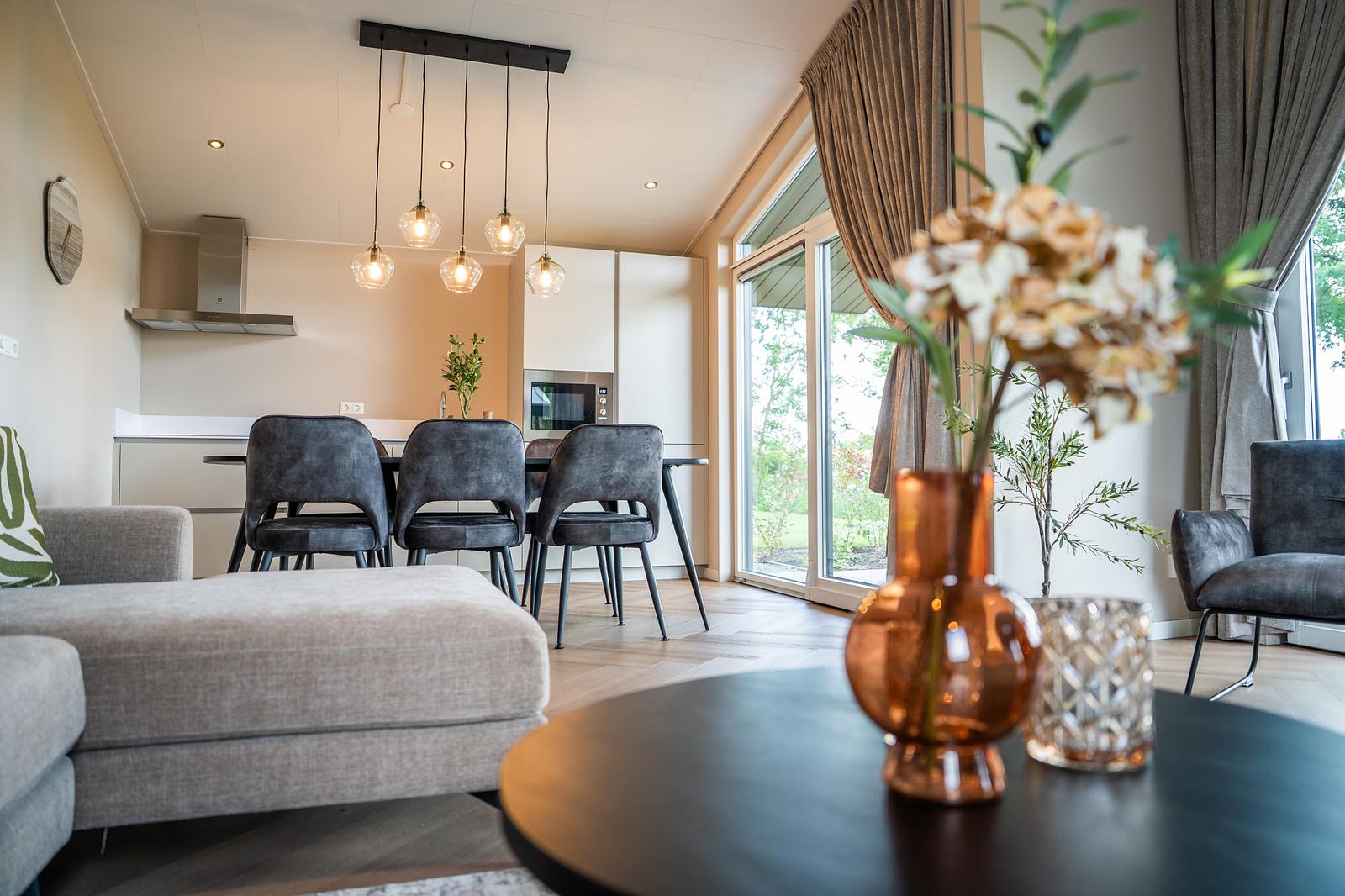 Unsere Villa Parkzicht Unterkünfte befinden sich an einem wunderschönen Ort am Rand des Parks, wodurch Sie einen freien und weiten Blick auf die umliegende Landschaft genießen können. Die Villen strahlen Ruhe aus dank ihrer luxuriösen, modernen und stilvollen Einrichtung, während die Natur rundherum für einen entspannten Aufenthalt sorgt.